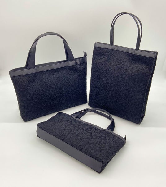 A4ファイル(カタログなど)を収納できる縦長・横長タイプから、冠婚葬祭向けのミニサイズまで。上品でエレガントなレース模様とサテンを採用。長く持ち歩く時にうれしい軽量感もポイントです。