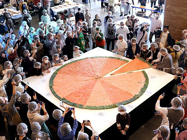 すしを通して富山の知名度拡大や来訪者増加を目指すイベント「富山寿司(すし)すきフェスタ」が23日、富山駅南北自由通路で開かれた。「世界で一番大きな」と銘打ったますずし作りには、大人から子どもまで県内外の約240人が参加。県や富山市がすしの街を発信する中、日付にちなんで直径3・23メートルもある巨大な富山の名産を完成させ、観光客らの目を引いた。