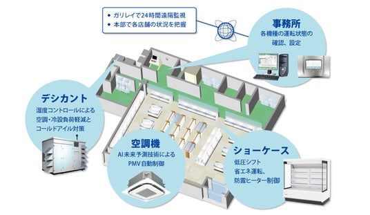 冷凍冷蔵機器、エアコン、換気、デシカント等をAI自動制御し、トータルエネルギーの最小化を