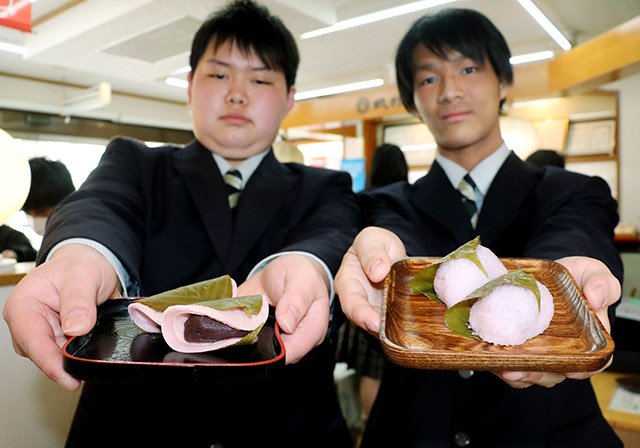 2年生の水田空良さんは「桜の香りを強く感じられ、すごくおいしい。桜餅を通して、中央農業が桜の名所であることを多くの人に知ってほしい」と話し、小澤さんは「若い人が和菓子に興味を持ってくれてうれしかった」とほほ笑んだ。