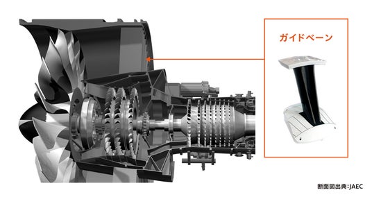 薄層プリプレグシートを用いて製造される航空機エンジン(PW1100G-JM)の部品 エンジン断面図提供:(一財)日本航空機エンジン協会(JEAC)