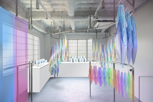 新たにオープンするフロアでは、小松マテーレのグループ会社「アマイケ合同会社」の極薄素材「天女の羽衣(R)」を使用したストールやポケットチーフを多数展示・販売いたします。従来の1階フロアだけでは表現できなかった、素材の美しさを目で見て、触って感じていただける空間となっています。商品の陳列にもこだわり、素材の価値をお客様に伝える新たな展示スペースとして活用してまいります。