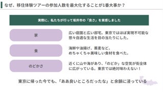 そもそも、移住人口を確実に増加させている坂井市ですが、福井県の他の市と比較して、伸び率が高いことや、移住メリット、そして移住した人々の生の声を、グラフィカルに分かりやすく伝えていることで、さらなる移住促進につながるのではないかと思います。内田くん、和久田さん、ありがとう、お疲れ様でした!