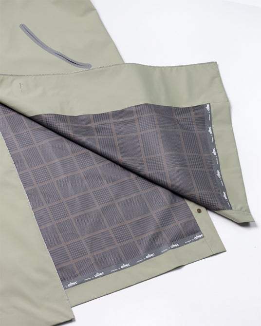 「これまでアウトドアやスポーツウェアに採用されてきたRUSTORE(R)の素材は、防水や防風などの高い機能をもちます。その素材とファッション性を合わせて、日常のなかでより軽快に快適に過ごすことのできるライフスタイルウェアをつくれないかという考えが出発点にありました。もともと耐久性に優れた素材ですが、ライトジャケットのポケットに水抜き穴を設け、ステンカラーコートの裏地にロゴ入りの防水テープを付けるなど、ミントデザインズさんと協働して洗練されたデザインを取り入れながら、よりハードな環境にも対応するように工夫を凝らしています。薄く軽量でストレッチ性があって動きやすいのでさまざまなシーンで活躍し、永く愛用することができます」(テックワン株式会社 alltecブランドマネージャー 加藤雅章)