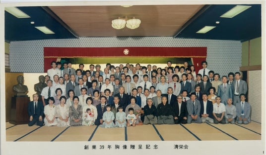創業39年目、産業が発展し多くの関連製造業の方々と仏具を製造していました(写真中央/清一・とよ)