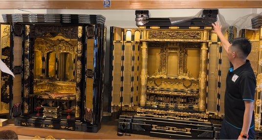 地域ごとに特色があり、つくりや加飾が異なる仏壇。豪華絢爛な仏壇と仏壇のための仏間は家族が想いを込めてつくる場でした。