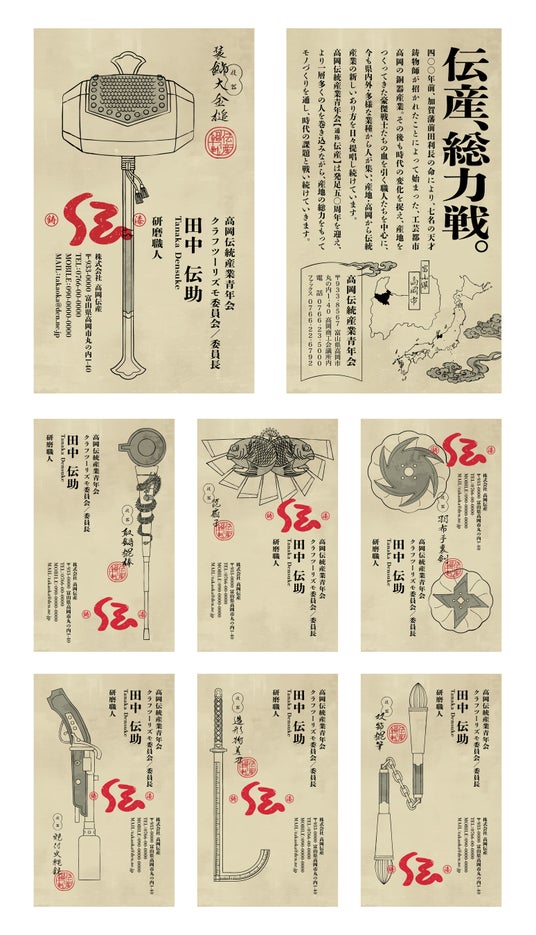 「伝産、総力戦。」を表現した、それぞれの職人スキルが分かる高岡伝産の新しい名刺・全7種