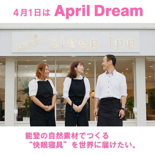 #AprilDream#Sleepinn#能登発快眠寝具#能登のやさしさを世界へ#眠りで人をつなぐ#地域から世界へ#能登の恵み