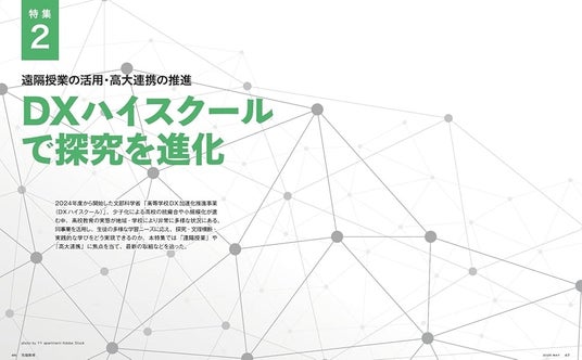 同事業を活用し、生徒の多様な学習ニーズに応え、探究・文理横断・実践的な学びをどう実現できるのでしょうか。本特集では「遠隔授業」や「高大連携」に焦点を当て、最新の取組などを追いました。