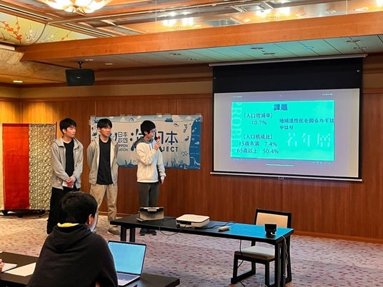 人口減少で廃校が増える能登で、廃校をサーフィンや天体観測の体験施設に再生する計画。「『青春』をテーマに若者を呼び込み、能登を『第二の故郷』に」と、他地域の成功事例を参考にした戦略を提示。