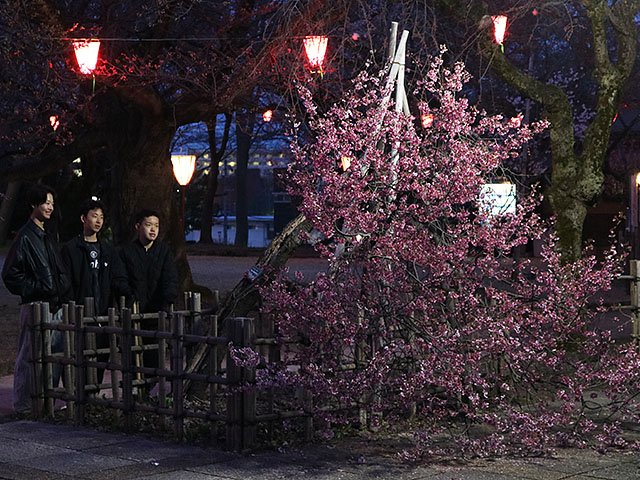 「日本さくら名所100選」に選ばれている高岡古城公園(富山県高岡市古城)が会場の「高岡桜まつり」が1日始まった。来園者はぼんぼりに照らされた夜桜を楽しんだ。13日まで。