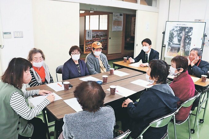参加者は「防犯面が心配」「健康のために毎日体操をしている」といった日頃の不安や悩み、過ごし方などを共有。市社会福祉協議会が1人暮らし向けのサービスを紹介した。