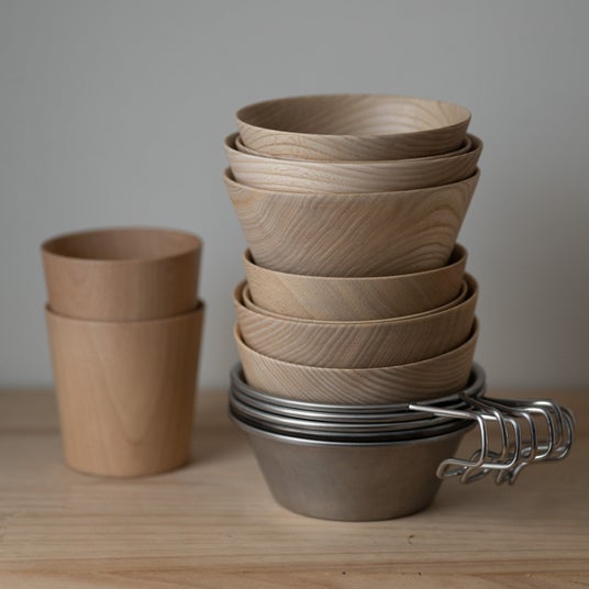 この課題に対し、畑漆器店は異なる形状の器を組み合わせることで、機能性と美しさを両立した新たな木製組み食器を開発。アウトドアでも日常でも活躍する、木製組み食器「ouyouki(応用器)」が誕生しました。