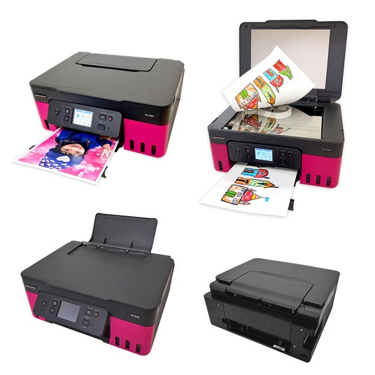 スキャナー一体型であるため、写真や手書きのイラストを直接取り込んで、可食シートへプリントすることが可能です。食用インクで印刷した可食シートをケーキの上に載せるだけで、オリジナルのフォトケーキが完成します。
