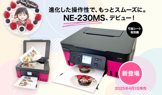 業務用フードプリンターの開発・販売を行う株式会社ニューマインド(本社:東京都中央区)は、可食シート専用プリンター「NE-230MS」を2025年4月1日より発売いたしました。従来機「NE-220MS」から操作性・利便性を大幅に向上させ、フォトケーキやプリントスイーツ製造の現場をよりスムーズにサポートします。