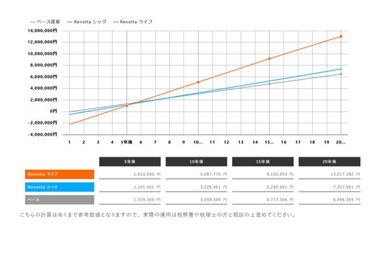 通常の原状回復・ライトリノベーション・今回のリノベーションでのそれぞれの税引後キャッシュフローの分析結果