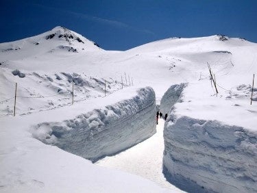アルペンルートが開通しているのは11月末までの期間。それ以降の冬季は閉鎖され、一面が雪に覆われた静寂な白銀世界となります。その間に積もりに積もった雪の除雪作業は1月の下旬頃から開始されます。GPSを駆使しながら、雪に埋もれた道をブルドーザーで少しずつ掘り進めながら、アルペンルート専用のロータリー除雪車で雪の壁を切り拓いてゆくと、世界的にも有名な「雪の大谷」が出来上がります。今年の除雪は寒波の影響もあり2月11日から開始され、現在も大型の除雪車を投入しながら、標高2450mの室堂までの約31キロの区間の除雪が進められています。