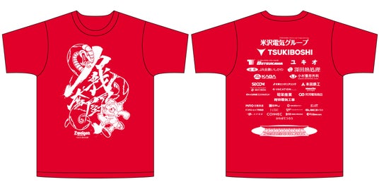 Tシャツ背面に企業名が記載されています。