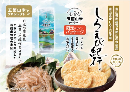 洋平)は、富山県南砺市、 公益財団法人五箇山農業公社と共同で、南砺市五箇山地区での有機米栽培の実証に取り組んでいる「五箇山米プロジェクト」を進めています。現在、プロジェクト3年目となる2024年に収穫した「てんたかく」を使用したしろえび紀行を販売中です。