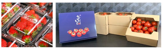 (左)苺「すみれのほっぺ」(右)トマト「かがやきトマト」