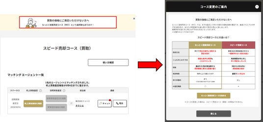 ※買取⇔仲介コースの行き来がしやすくなるよう、「仲介コース」への変更を選択できるボタンも設置