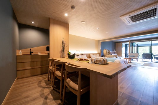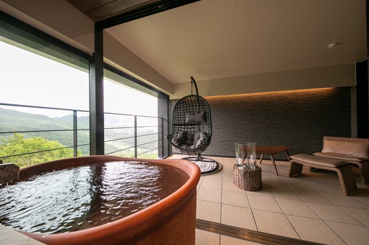古民家風と数寄屋造り風の2つの特別室は、日本家屋の温もりと風情を感じさせる、まさに贅沢な空間です。それぞれのお部屋には、発哺温泉の源泉が注がれた温泉風呂が完備され完全プライベートな時間をお楽しみいただけます。
