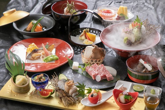 お食事は、志賀高原ならではの旬のおもてなしをお楽しみいただけます。当館のお料理は、素材への細やかな配慮と各種食材へのこだわりが特徴です。信州産リンゴで育った信州牛は、とろける柔らかさと上品な味わいが格別です。