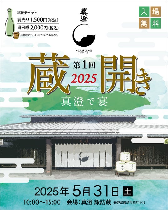 この度、宮坂醸造株式会社(本社所在地:長野県諏訪市、代表取締役:宮坂直孝)は、真澄 諏訪蔵にて、初めての蔵開きイベント「真澄 蔵開き 2025 ―真澄で宴―」を開催いたします。