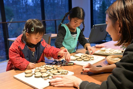 丸太や木の実を使ってお土産を作るクラフト体験。キャンプ場内を散策しながら長野の自然について学び、木の実や樹木を収集して、自宅に飾れる小さなウォールツリーを作りましょう。