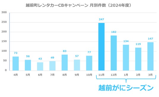 月別の利用者数は、越前がにシーズンを迎える11月から3月にかけて多くなり、全ての月で前年を上回る実績となりました。