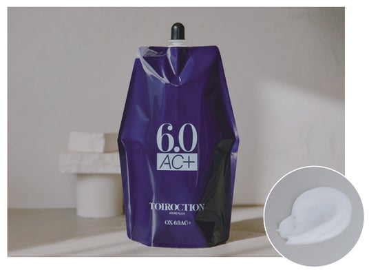 使用用途に合わせた過酸化水素濃度を設定し、施術のしやすさにこだわった粘性に設定されています。髪の体力を残しながら繊細なブリーチ施術をサポートする「OX-6.0AC+」、最小限のリフト力とスピード発色で柔らかい粘性がトナーに最適な「OX-1.5AC+」の2アイテムになります。