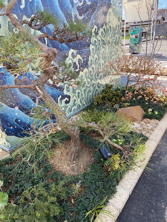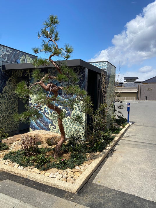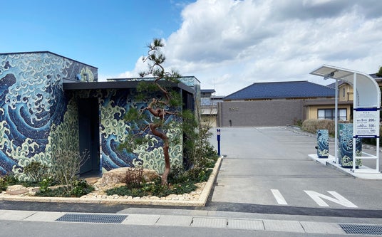 江戸の浮世絵師 葛飾北斎が晩年期に訪れ、傑作「怒濤図 男浪」を残した長野県小布施町。北斎館は、2026年に開館50周年の節目を迎えます。近年利用が増える普通車専用の北斎館東町駐車場に、「怒濤図 男浪」を壁面にラッピングしたトイレと駐車場ゲートが完成。トイレと周囲を囲む庭は、怒濤図と縁絵に見立て、草花、自然石を織り交ぜた、新たな街のランドスケープになります。このトイレは、小布施町役場から助成を受け、北斎館で建設しています。(2025年4月24日にテープカットを行います。取材等の受付・お問い合わせ等の詳細は下部に記載)