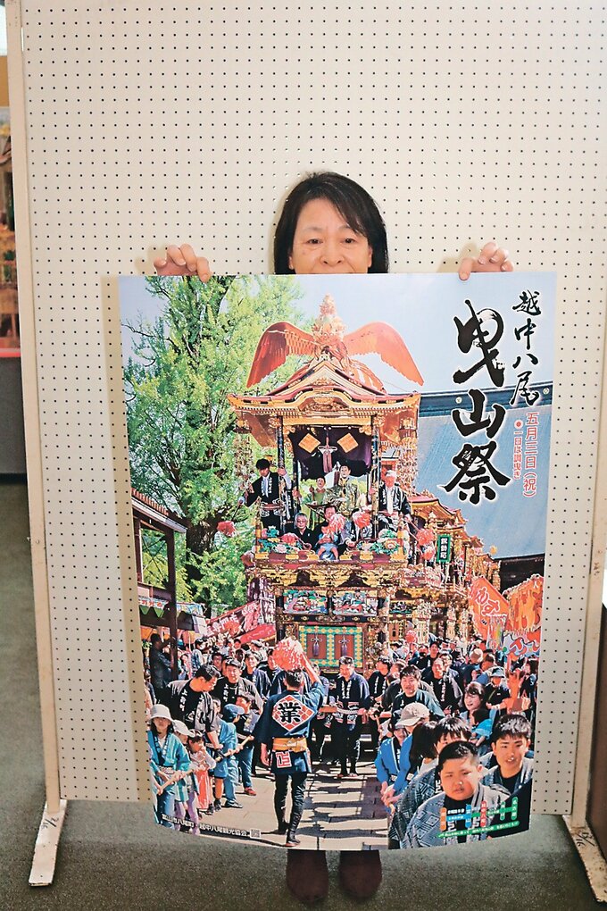 越中八尾観光協会(鈴木聡会長)は、5月3日に富山市八尾町中心部で開かれる「越中八尾曳山(ひきやま)祭」をPRするポスターを作った。各町や県内の観光施設などに掲示し、機運を高める。