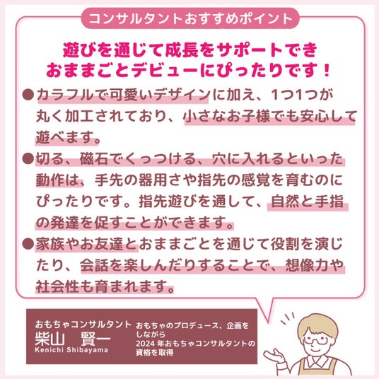 『マザーガーデン』は、今後もかわいらしいデザインを大切にしながら、子どもの学びの要素を取り入れたおもちゃを創出し、成長を支える遊びの提供を行ってまいります。