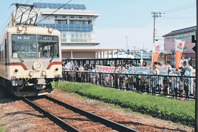 参加者は横断幕を掲げたり、オリジナルデザインのうちわを手にしたりしながら、「ようこそ立山町へ」「楽しんできてね」と声をかけて手を振り、乗客はにこやかに手を振って応えていた。ライチョウのマスコットキャラクター「らいじぃ」も駆けつけた。
