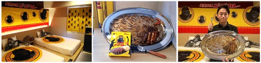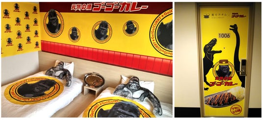 「ゴーゴーカレールーム」は、「ゴーゴーカレー」の店内をイメージして、「ゴーゴーカレー」のロゴでおなじみのゴリラを使い客室を装飾しました。SNSやテレビなどで話題の「ゴーゴーカレー」の爆食メニューである「メジャーカレーワールドチャンピオンクラス(WCC)」のサンプルをご用意しており、お客様のスマートフォンなどで撮影いただくことで、「WCC完食体験」をお楽しみいただけます。ご宿泊のお客様には、ホテルオリジナルパッケージの「ゴーゴーカレー」(1部屋につき1食)と、「ゴーゴーカレー」の店舗で使用できる「トッピングサービス券」(1部屋につき2枚、「ゴーゴーカレー」にちなんで、「5」のつく日にご宿泊の場合は5枚)のお土産をご用意しています。宿泊開始は「ゴーゴーカレー」にちなんで、5月5日(月)からとなり、価格は、朝食付き16,200円~、素泊まり12,600円~(いずれも1室1泊、税サ込)。