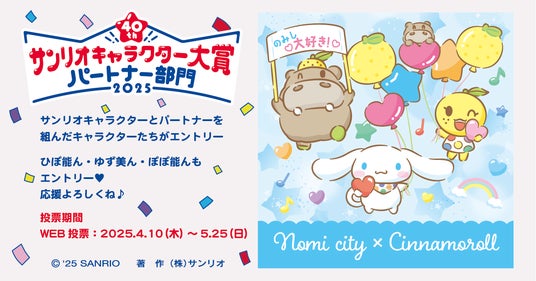 能美市公式キャラクター「ひぽ能ん(ひぽのん)」「ゆず美ん(ゆずみん)」「ぽぽ能ん(ぽぽのん)」が、(株)サンリオの人気投票イベント「2025年サンリオキャラクター大賞」のパートナー部門にエントリーしました。