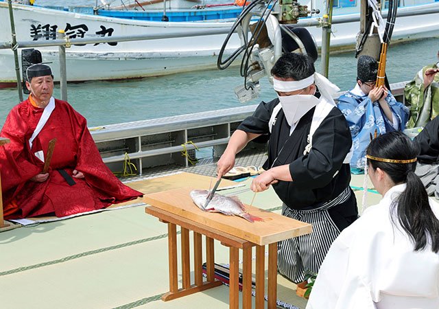 1580(天正8)年に始まった同祭は、不漁や海難事故が起きた翌年の4月19日に営まれる。前回は2007年に、ホタルイカ漁の不振や異常気象を受けて行った。