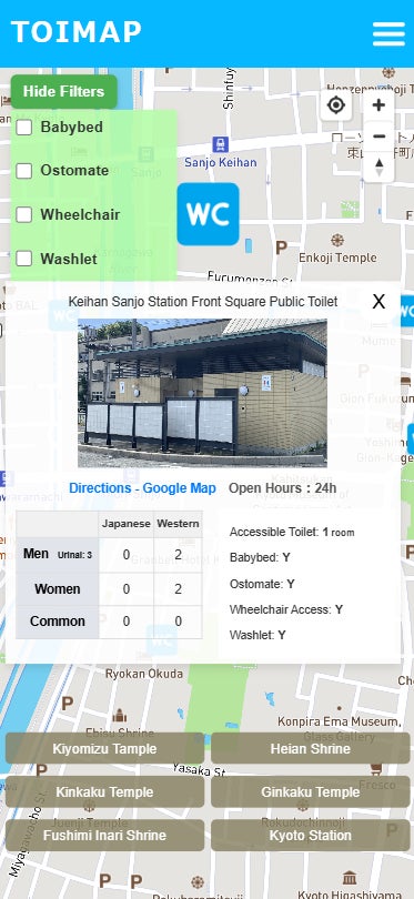 株式会社KICKs(本社:京都市、代表取締役:山本健人)は、観光地トイレ情報を検索できるWebサービス「TOIMAP(トイマップ)」をリリース。訪日外国人や観光客に向けた無料トイレ検索サービスです。