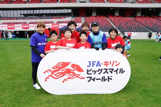 参考)これまでJFAとキリンは、東日本大震災の復興応援プロジェクトとして、2011年から「JFA・キリン スマイルフィールド※1」、「JFA・キリン ビッグスマイルフィールド※2」や、2016年からは「JFA・キリン 熊本復興応援 サッカー教室※3」を実施するなど、サッカーを通じて、10万人を超える被災地の子どもたちや地域の人々へ笑顔を届けてきました。