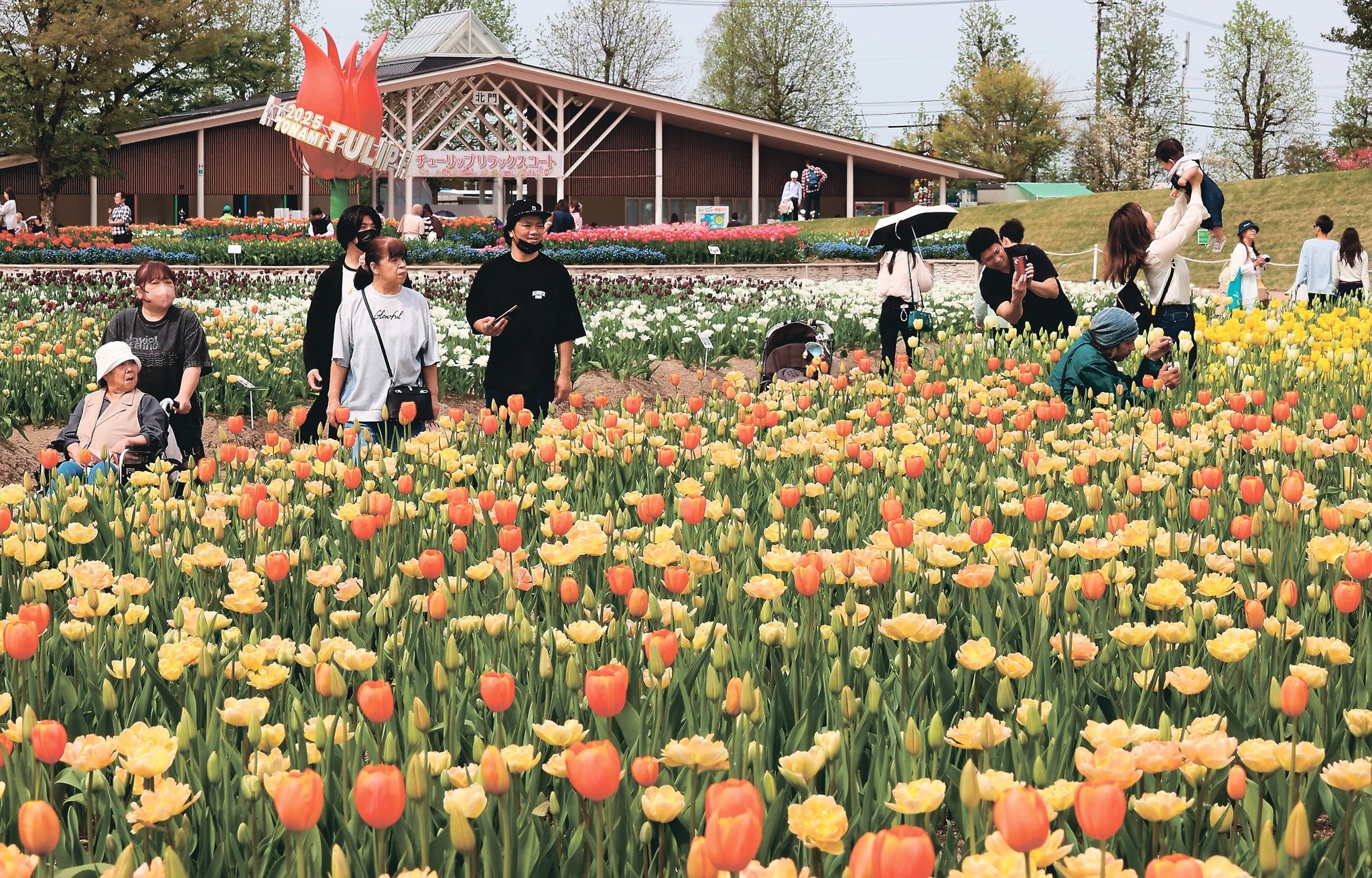 国内最大級の300品種300万本が会場を彩る花の祭典「2025となみチューリップフェア」が22日、富山県砺波市花園町の砺波チューリップ公園をメイン会場に開幕した。初日は国内外から6千人が訪れ、園内の色とりどりの花を楽しんだ。5月5日まで。