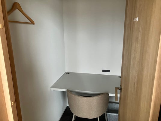プライバシーを確保しながらオンライン会議や作業に集中できる防音設計の個室も利用可能。Web会議に最適な照明と音響環境を整え、背景を気にせず重要な商談や面接にも対応できます。