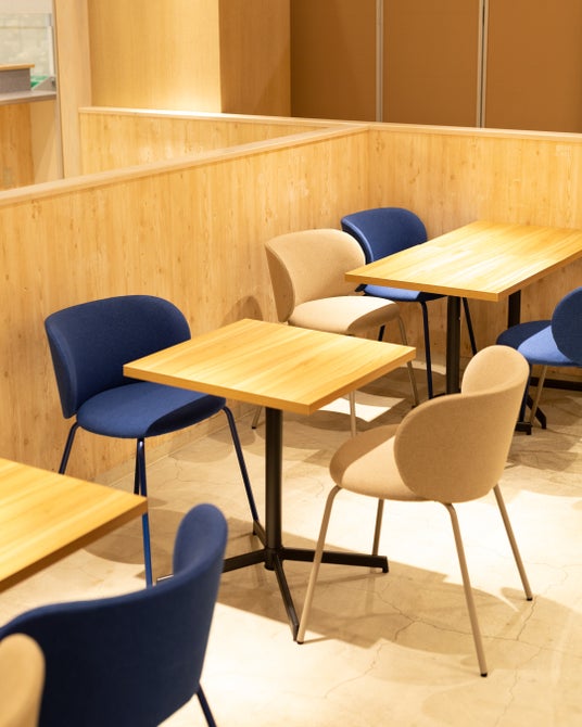 2Fの「UNI COFFEE ROASTERYららぽーと海老名」は全72席。ブラウンを基調とした優しい色味を取り入れた内装で、ショッピングの休息となるよう居心地の良い空間に仕上げています。