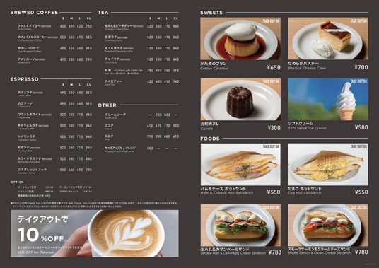 2Fの「UNI COFFEE ROASTERYららぽーと海老名」はブラウンを基調とした優しい色味を取り入れた内装に、全72席とUNI COFFEE ROASTERYブランドでも最大級のスペース、席数を用意しております。提供メニューは定番のドリンク類、カフェスイーツのほか、サラダやパスタ、サンドイッチなどもラインアップ。カフェからランチまで幅広いシーンでご利用いただけます。