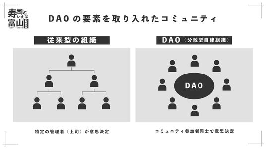 富山県とWeb3 Times合同会社(本社:東京都中野区、代表社員:末次祥太郎、以下Web3 Times)は、地域課題をデジタルソリューションで解決するDigi-PoC TOYAMA実証実験プロジェクトの一環として、「寿司といえば、富山」ブランディングの取組みの輪を拡げ、関係人口を創出・拡大するため自律分散型オンラインコミュニティ「寿司といえば富山DAO」を2024年10月に設立しました。