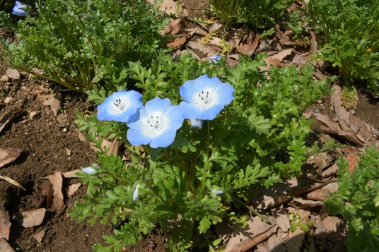 ネモフィラは北アメリカ原産で、ムラサキ科(旧ハゼリソウ)ネモフィラ属の一年草。瑠璃色の花色と唐草 模様に似ている葉から「瑠璃唐草」の