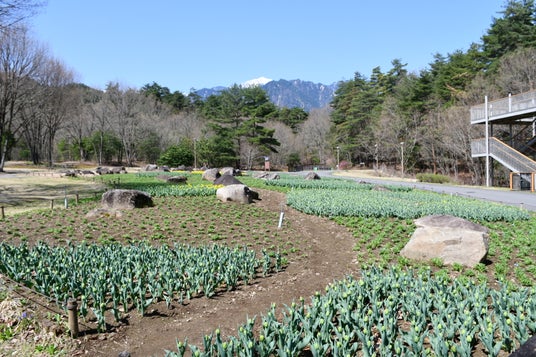 国営アルプスあづみの公園大町・松川地区では、昨年までのスイセンから大きく模様替えして、初めて「ネモフィラ」を植えました。 現在、ネモフィラはぽつぽつと咲き始め、見ごろは5月上旬から5月中旬となる見込みです。餓鬼岳を背景にネモフィラの可憐な青い花が北ア ルプスの春を彩ります。あわせて、黄色や赤色のカラフルなチューリップとネモフィラのコラボレーションをお楽しみいただけます。