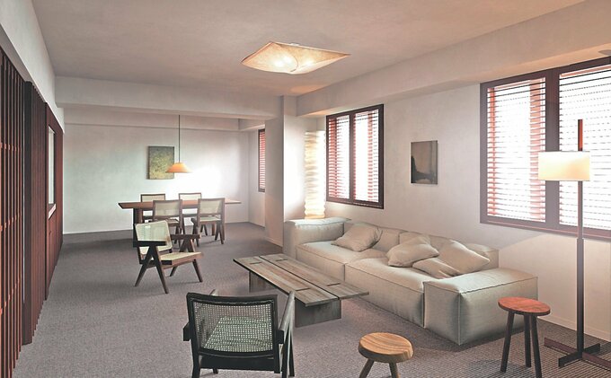 室内にはスイスの建築家ピエール・ジャンヌレが手がけた椅子や、世界的な彫刻家イサム・ノグチの照明を設置。バスアメニティーは富山発のオーガニック製品ブランドを採用している。