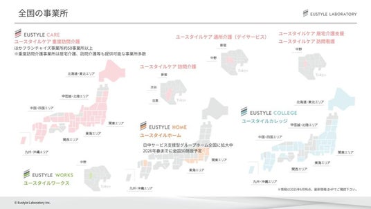 特に、障害福祉分野においては国内最大規模の障害者向け重度訪問介護事業者として、全国にサービスを広げています。 今後も全国各地に新規事業所・新規事業を展開し、日本の介護に関わるあらゆる課題解決に挑戦してまいります。