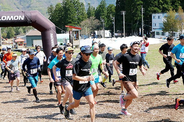 経営再建中の同スキー場を応援し、アウトドアの魅力を知ってもらいたいと、登山用品などを取り扱う富山市桜町の「スポーツのマンゾク」が企画。参加者は、上り約700メートル、下り約800メートルの約1・5キロのコースを力走した。